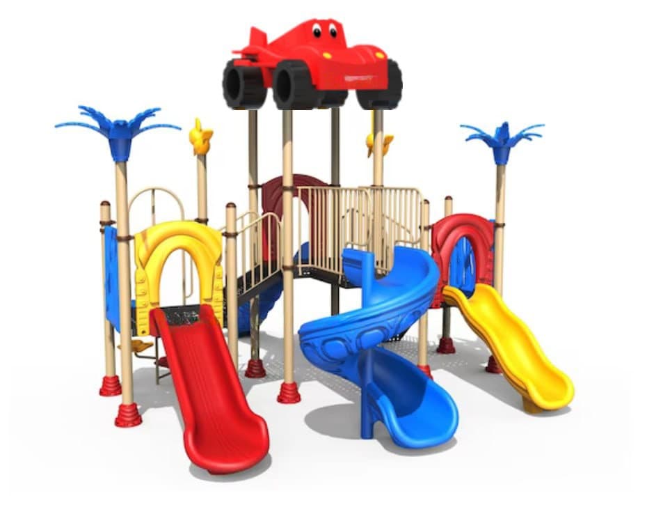 Dotare: o scară cu balustradă (mare), două scări cu balustradă (mică), un turn cu acoperiș „roabă”, două turnuri fără acoperiș, un tobogan drept (H=1,5m), două tobogane drepte (H=1m). ), tobogan cu șurub (H=1,5m), balcon, scară, complexul este decorat cu elemente decorative luminoase.