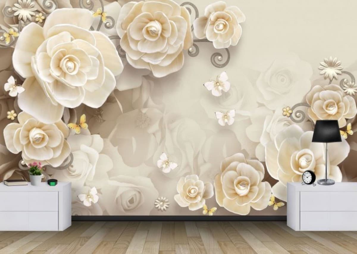 Fototapet 3d Art.Desig Grafică, Fundal deschis si flori