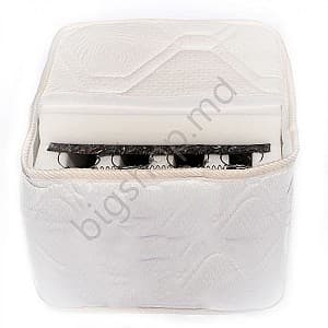 Perimetral, pe marginea plasei de arc este adaugata o margine antilasare cu spuma poliuretanica de inalta densitate SISTEM BOX. Peste plasa de arcuri se aseaza (pe ambele fete) 2 straturi de plasa thermofelt cu densitatea de 1000 g/mp, apoi o placa poliuretanica cu densitatea de 28kg/mc si cu grosimea de 6 cm, entru a crea o zona de confort sporit. Materialul exterior este realizat din 3 straturi, dublu matlasat complet din bumbac peste care se insereaza un strat de vatelina cu densitatea de 200g/m si TNT 12g/mp.