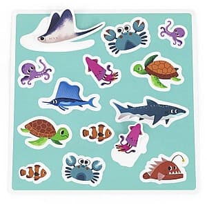 Содержимое набора: 2 удочки с леской и магнитом. 26 изделий с изображениями рыб и морских звезд. Панель с 14 наклейками.