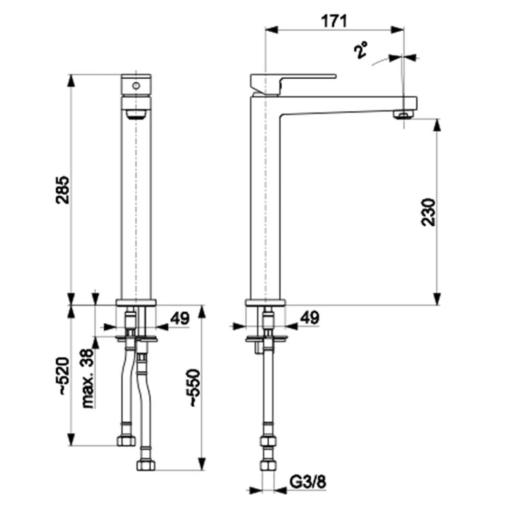 Высота смесителя: